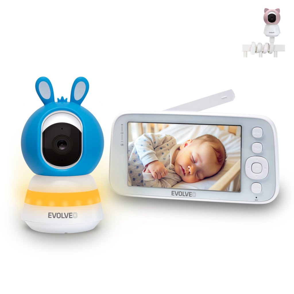 EVOLVEO Baby Monitor N5 - Set videochůvičky s 360° dohledem, obousměrnou komunikací a ukolébavkami, modrá