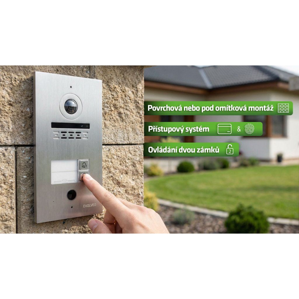 EVOLVEO DoorPhone ID-2, 2drátový videotelefon pro dva byty s RFID, otiskem prstu a podporou ONVIF kamer