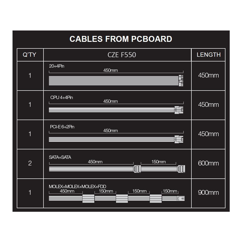 • 1x MOLEX, 450mm + MOLEX 150mm + MOLEX 150 mm + FDD 150 mm