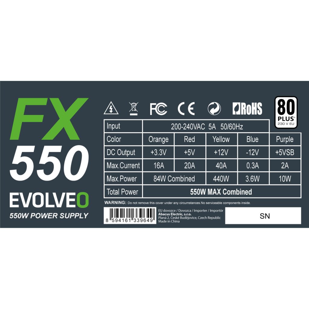 EVOLVEO FX 550, zdroj 550W ATX, 14cm, tichý, 80+, White, záruka 3 roky