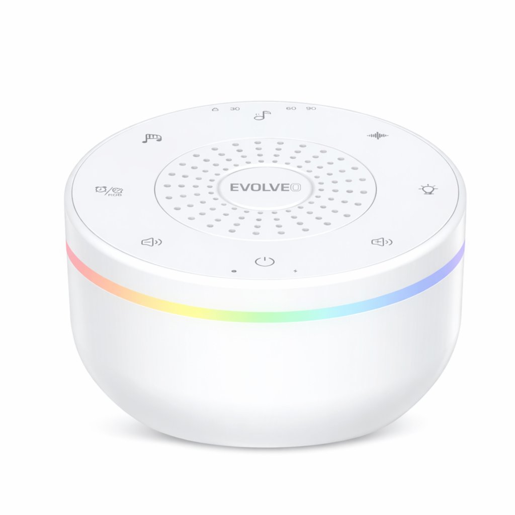 Představte si, že každý večer v ložnici zavládne klid a miminko se přirozeně uklidní při známých zvucích a jemném světle. Právě k tomu slouží EVOLVEO Nubiloo – malý, ale silný pomocník na dobrou noc. Tento chytrý uspáváček kombinuje zvuky bílého šumu, ukolébavek a přírodních melodií s nastavitelným nočním světlem. Přístroj pomáhá nejen s uspáváním, ale i s udržením klidného spánku během noci. Skvěle se hodí pro novorozence, batolata, ale i starší děti a unavené rodiče. Jeho použití je jednoduché a intuitivní – na nočním stolku, v kočárku i na cestách.
