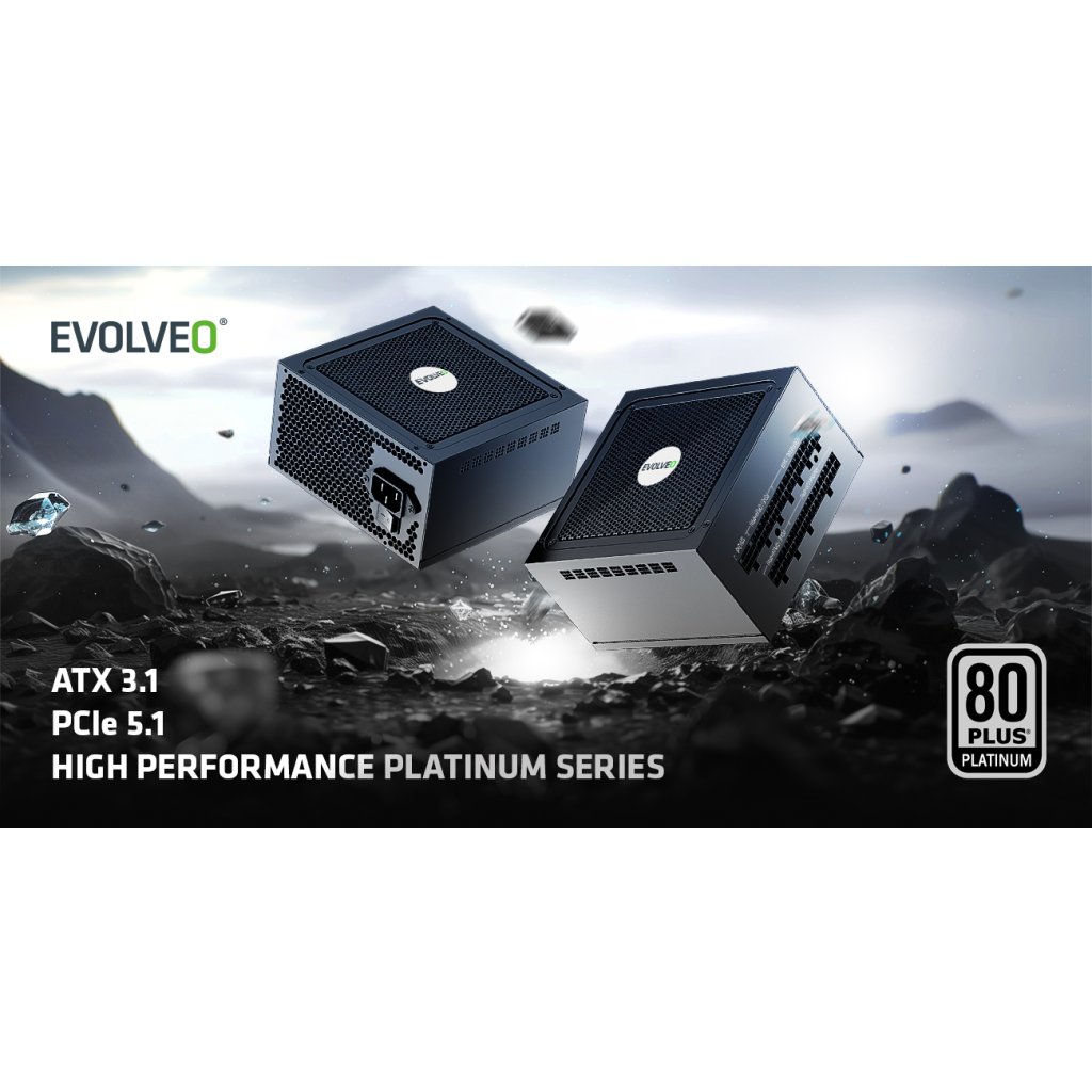 EVOLVEO P1000 zdroj 1000W, 80+ PLATINUM, ATX 3.1, aPFC, 140 mm ventilátor, 3 roky záruka, černý