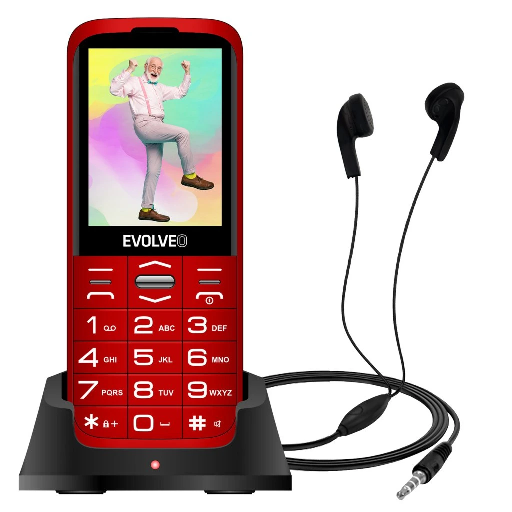 ROZBALENO EVOLVEO EasyPhone XO, mobilní telefon pro seniory s nabíjecím stojánkem (červená barva)