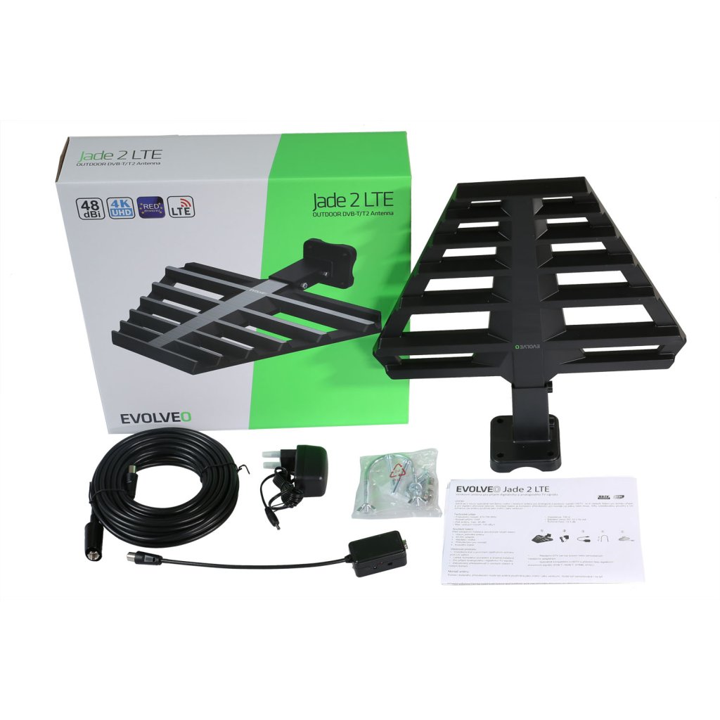 ROZBALENO EVOLVEO Jade 2 LTE, 48dBi aktivní venkovní anténa DVB-T/T2, LTE filtr